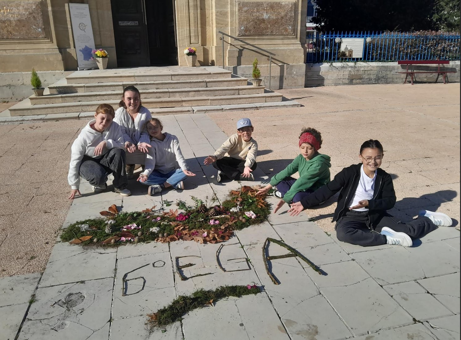 Branches, feuilles, pommes de pin, mousse, pétales de fleurs… Les élèves ont rassemblé avec soin ce que la nature leur offrait pour composer une œuvre collective en forme de cœur, symbole de partage, de beauté et d’unité. Cette création éphémère, installée face à la chapelle, a suscité une véritable émotion parmi les jeunes artistes.