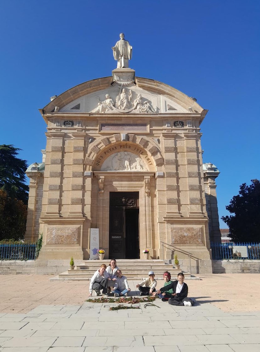 Les élèves de 6e EGA ont eu l’occasion de découvrir un lieu voisin chargé d’histoire : le site du Berceau de Saint Vincent de Paul, qu’une partie d’entre eux ne connaissait pas encore. Après cette première visite inspirante, la classe y est retournée le lendemain pour s’initier au Land’Art, une pratique artistique qui consiste à créer avec les éléments naturels présents sur place.