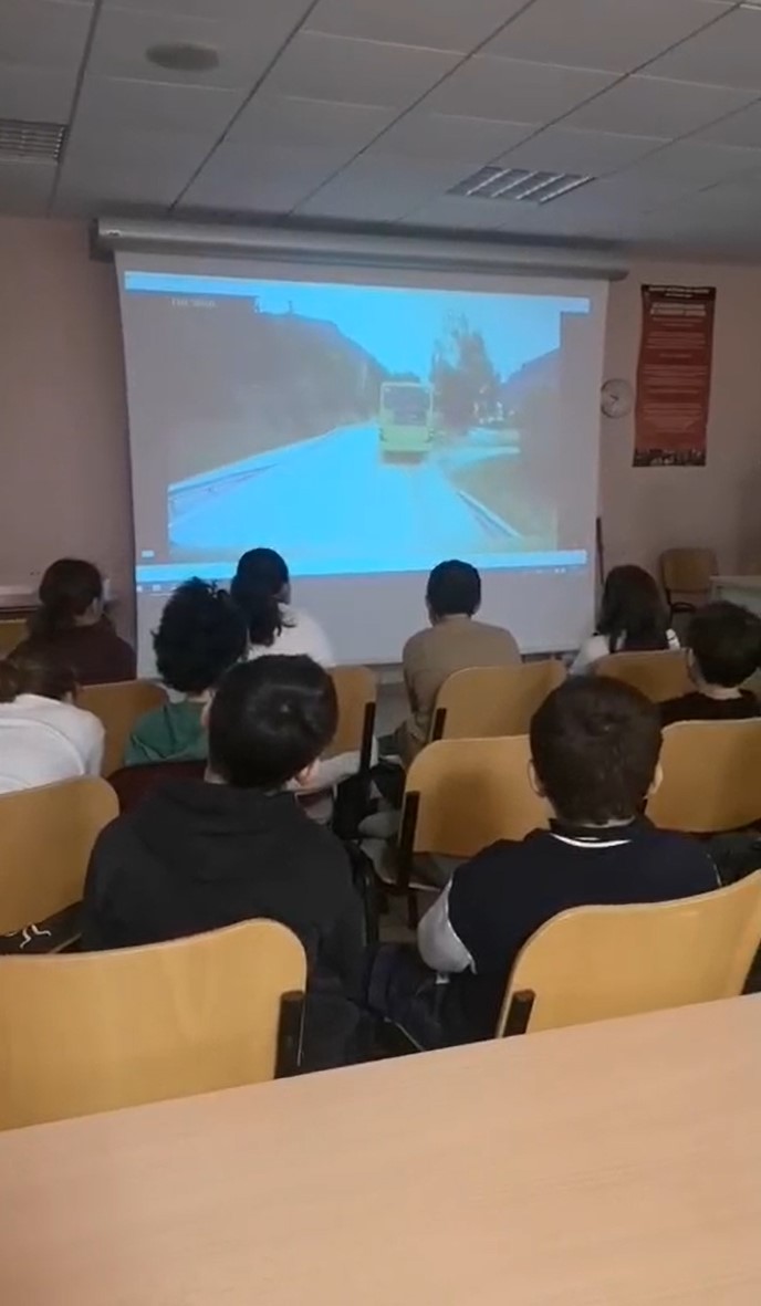 La matinée a débuté en classe, où les élèves ont découvert des vidéos pédagogiques et reçu des explications techniques sur les comportements à adopter pour voyager sereinement et en toute sécurité.