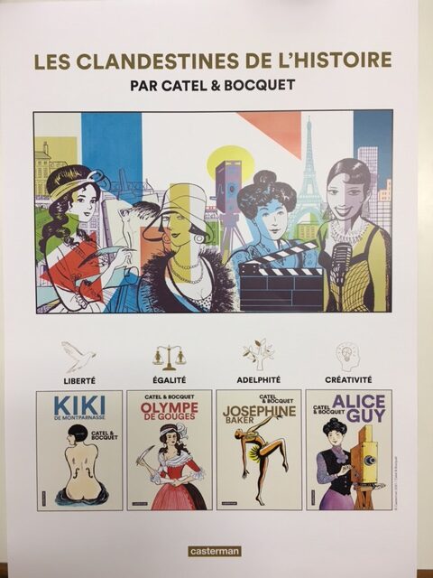 Catel, célèbre illustratrice de BD dédiée aux femmes ayant marqué l’histoire, s’est associée à José-Louis Bocquet pour créer une série de bandes dessinées féministes où les personnages principaux sont toujours des femmes.