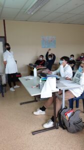 Dans le cadre d’un projet avec partenariat destiné à faciliter l’insertion professionnelle des BAC.PRO.MCV. métiers du commerce et de la vente et la poursuite d’études en BTS, Madame Girardeau a présenter l’entreprise et répondu aux questions des élèves.